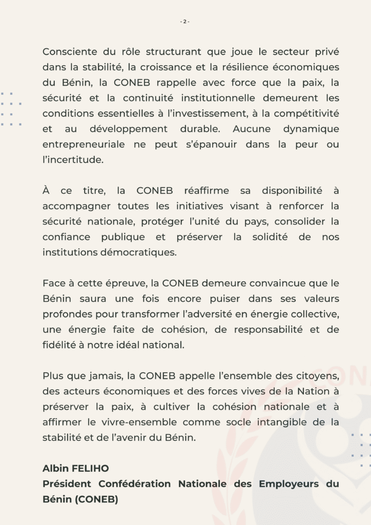 Organisation patronale ouverte à toutes les institutions de la république, engagée à "Travailler à l'avenement d'un modèle d'entrepreneurs et de dirigeants opérant dans la bonne gouvernance, l'éthique et la compétence professionnelle".